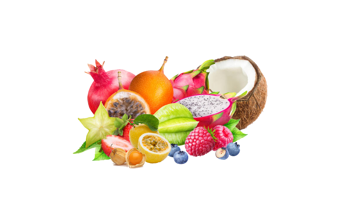 Pitahaya, granadilla, maracuyá, coco,mango,physalis,lichis…) entre otros.