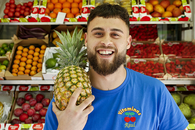 Raúl Cardaba es frutero. El frutero tiktokero (@fruterotiktokero). Tiene 25 años, más de 300.000 seguidores en Instagram, 160.000 en TikTok y ha conseguido hacer viral la frutería —de certero nombre Vitaminas— que regenta junto a su padre y a su hermana. Y no solo en redes. Hay quien peregrina hasta la calle Aristóteles, 1 (Madrid) a conocer al responsable de poner de moda frutas tan desconocidas como los mamones (un alimento dulce de países como Colombia, Venezuela o Paraguay, entre otros). Ahora está de vacaciones, pero, antes de marcharse, ha dejado casi una treintena de videos preparados para que sus redes no decaigan. Un influencer de la fruta en toda regla..